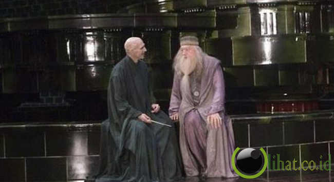 [lihat.co.id] - Dalam film HARRY POTTER THE ORDER OF PHOENIX, penonton bisa melihat pertarungan sihir hebat antara Voldermort dan Profesor Dumbledore. Keduanya tak ragu mengeluarkan sihir fantastis mereka untuk membuat lawannya menyerah. Harry yang saat itu melihatnya pasti menganggap bahwa keduanya memang tak bisa disatukan, Siapa bilang? Saat kamera tak lagi merekam, keduanya malah duduk bersebelahan dan asyik ngobrol.