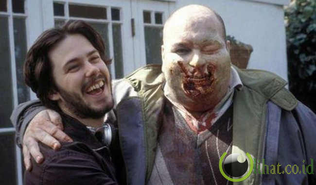 [lihat.co.id] - Jangan terkecoh dengan penampilan zombie yang menakutkan dalam film SHAUN OF THE DEAD (2004). Di dalam film mereka tak kenal lelah memburu korbannya dan nantinya siap mencabik-cabik korban hingga tewas. Tapi saat kamera sedang tak merekam, mereka ramah lho... bahkan menyempatkan diri berfoto bersama sang sutradara untuk album foto mereka.