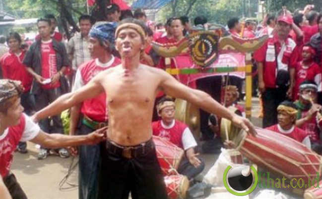 [lihat.co.id] - Debus memang merupakan kesenian asli masyarakat Banten yang ada sejak abad ke-16. Bentuk Atraksi Debus Permainan debus merupakan bentuk kesenian yang dikombinasikan dengan seni tari, seni suara dan seni kebatinan yang bernuansa mistis. Kesenian debus biasanya dipertunjukkan sebagai pelengkap upacara adat, atau untuk hiburan masyarakat.
